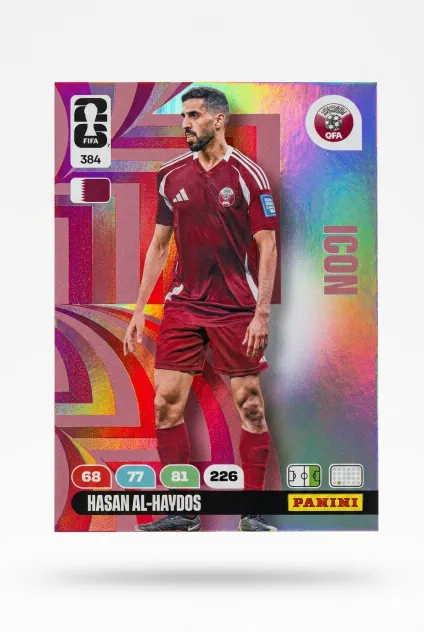 Hasan Al-Haydos Catar Icon #384 – Mundial Fútbol 2026 – Panini