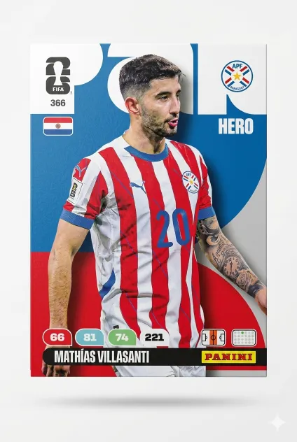 Carta Adrenalyn XL #366 de Mathias Villasanti que pertenece al Mundial de Fùtbol 2026. Compra tus cartas individuales en Ninfas y encuentra fácilmente esa carta que te faltan para completar tu álbum de fútbol