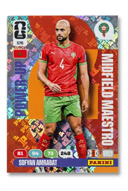 Carta Adrenalyn XL #576 de Sofyan Amrabat que pertenece al Mundial de Fùtbol 2026. Compra tus cartas individuales en Ninfas y encuentra fácilmente esa carta que te faltan para completar tu álbum de fútbol