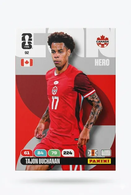 Carta Adrenalyn XL #92 de Tajon Buchanan que pertenece al Mundial de Fùtbol 2026. Compra tus cartas individuales en Ninfas y encuentra fácilmente esa carta que te faltan para completar tu álbum de fútbol