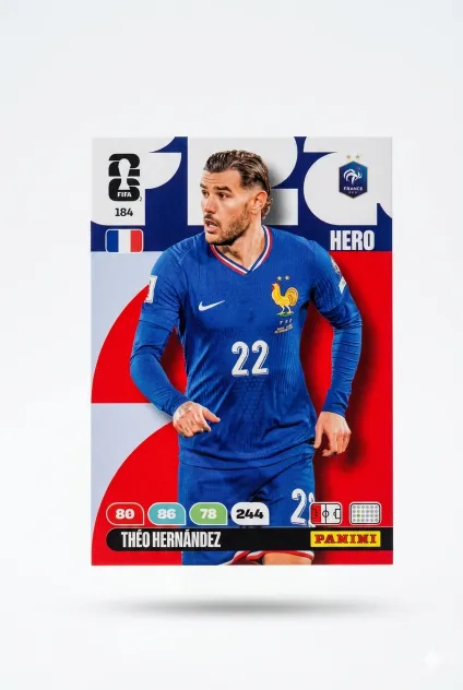 Carta Adrenalyn XL #184 de Theo Hernandez que pertenece al Mundial de Fùtbol 2026. Compra tus cartas individuales en Ninfas y encuentra fácilmente esa carta que te faltan para completar tu álbum de fútbol