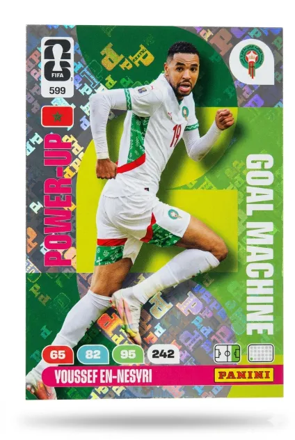 Carta Adrenalyn XL #599 de Youssef En-Nesyri que pertenece al Mundial de Fùtbol 2026. Compra tus cartas individuales en Ninfas y encuentra fácilmente esa carta que te faltan para completar tu álbum de fútbol